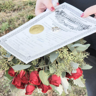 A wedding For folks who just need to be married. We do a very short service, meet at a coffee shop i.e. nearby and sign documents. Not for the romantic, but still a legal wedding. We must limit the number of people to four.